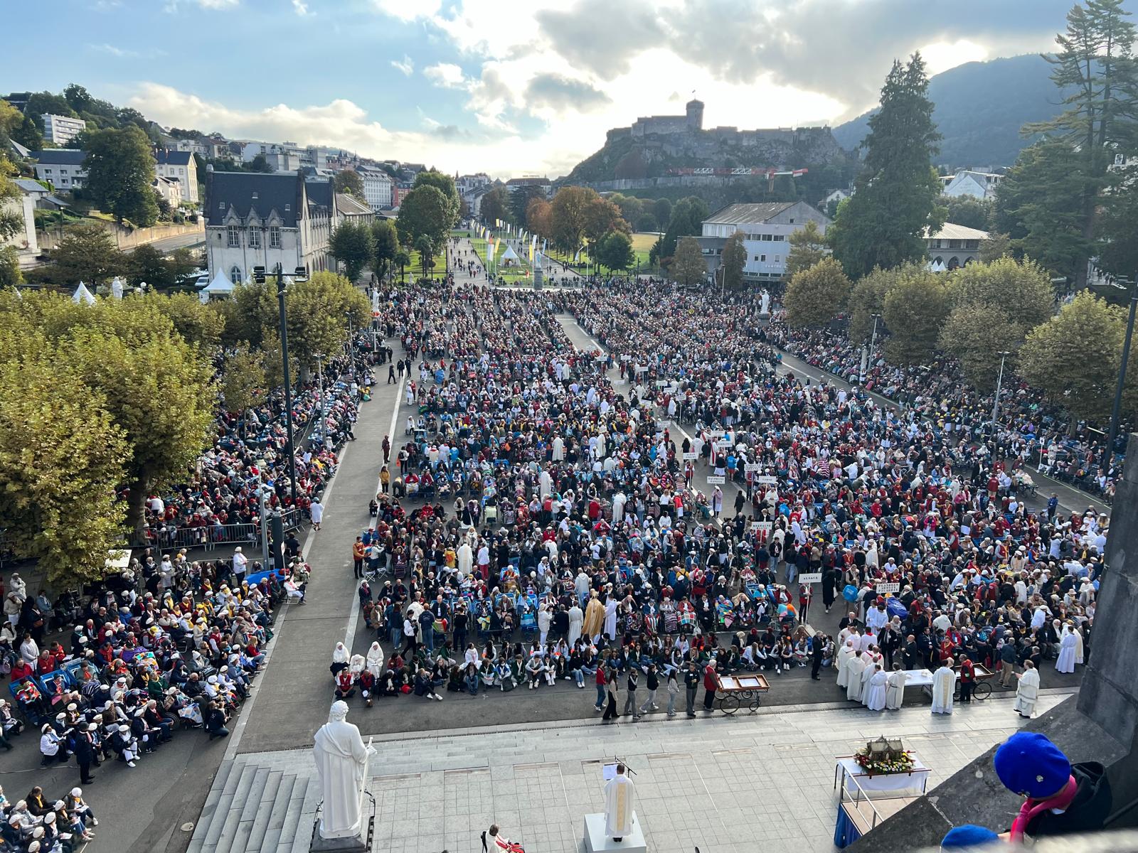 Le sacristain était au pèlerinage du Rosaire en ce début d’octobre 2025. Vous le reconnaitrez aisément : il porte un gilet bleu !