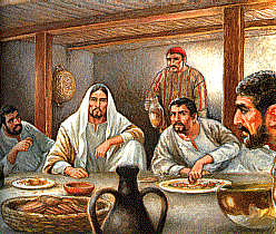Jésus a semblé plus préoccupé que d'habitude. Dans la soirée, au cours du repas, il a prononcé des mots qui en disent long sur la suite des événements de la nuit. De source sûre, on nous a informé qu'au cours du repas il prévoyait son arrestation. Il a pris une coupe de vin en disant: "Prenez-la et partagez entre vous. Car je vous déclare: Je ne boirai plus désormais du fruit de la vigne jusqu'à ce que vienne le règne de Dieu. Cette coupe est la nouvelle alliance en mon sang versé pour vous." Il a pris aussi un bout de pain et le partageant avec ses amis, il a dit: "Ceci est mon corps donné pour vous. Faites ceci en mémoire de moi." Grandes interrogations sur les visages de ses disciples, qui ne comprennent pas vraiment le sens de ces gestes. Mais ils sont habitués à ce que Jésus parle souvent en symboles et partagent le pain et le vin sans questionner. Est-ce que ce visionnaire qu'est Jésus savait ce qui l'attendait?